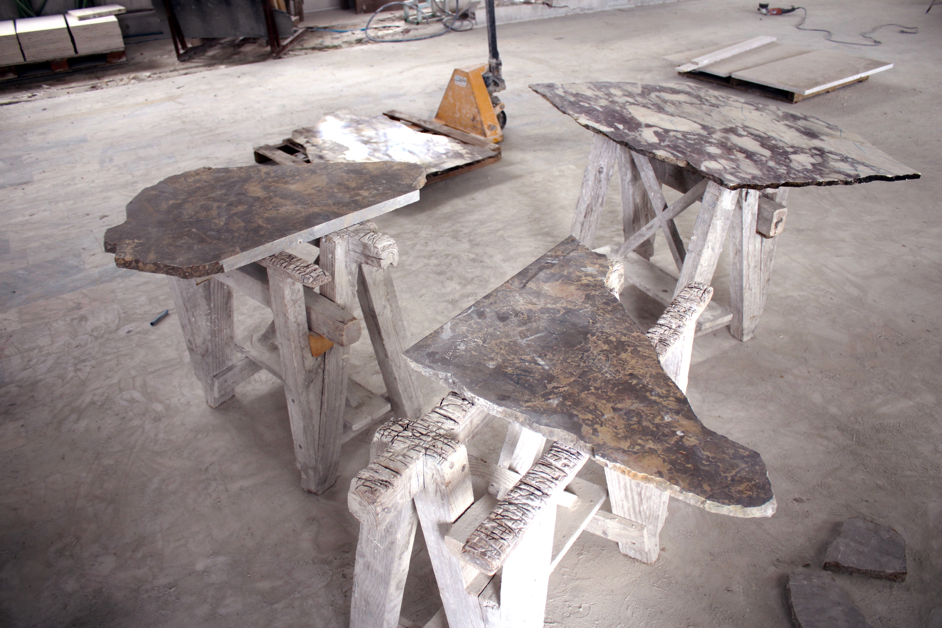 No total, foram produzidas 14 mesas, organizadas como fragmentos geográficos que evocam as diferentes massas continentais do antigo Gondwana: uma África (dividida em duas partes), oito Índias, duas Antártidas, uma América (também dividida em duas) e duas Austrálias. Esta distribuição reforça a leitura do conjunto como uma composição modular que, quando articulada, permite reconstruir simbolicamente o supercontinente original através das suas partes.