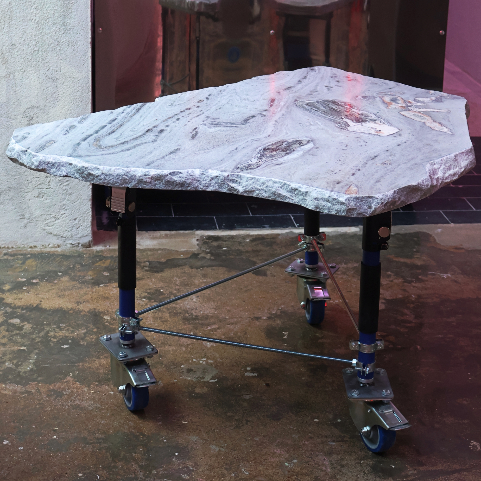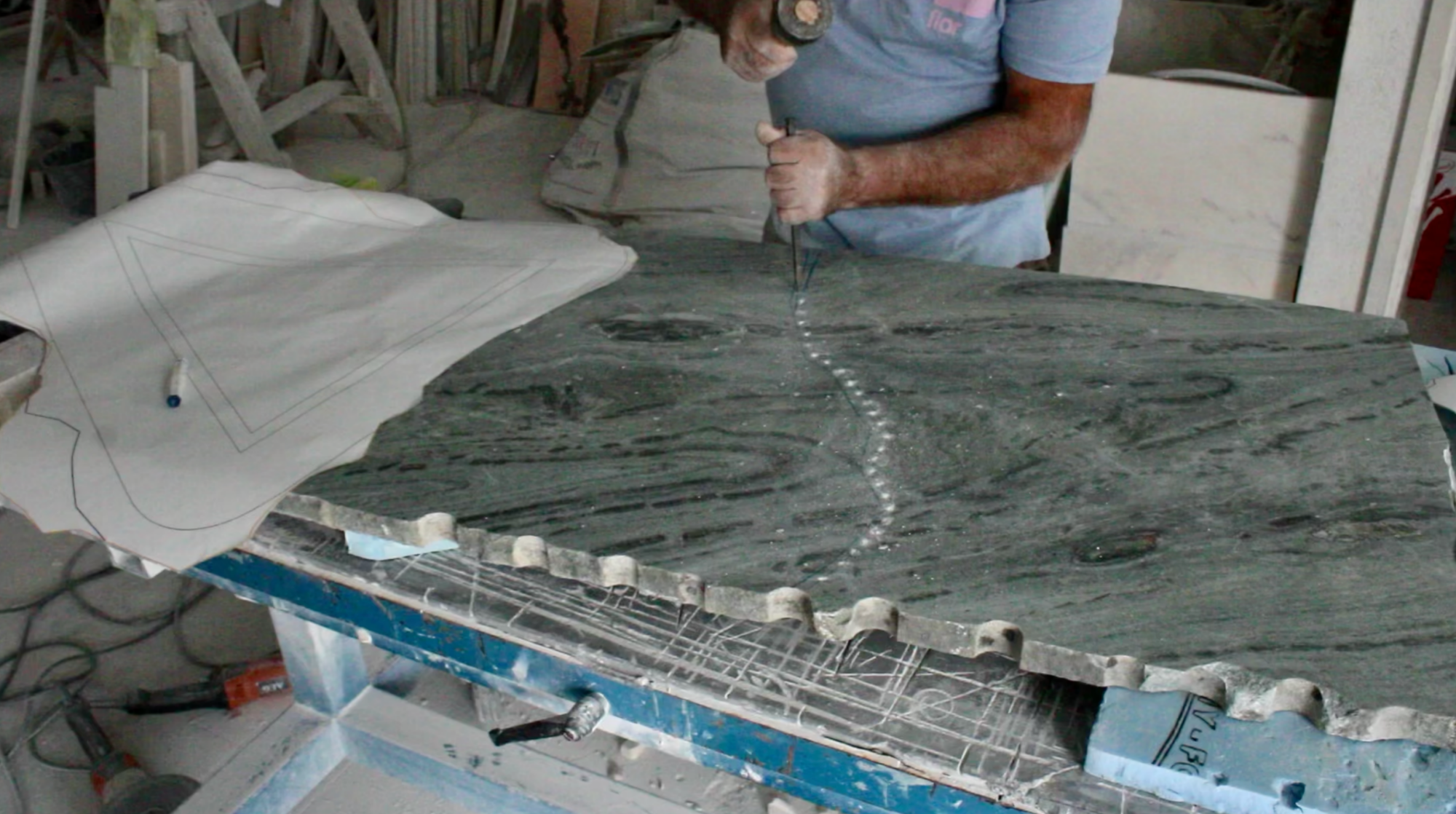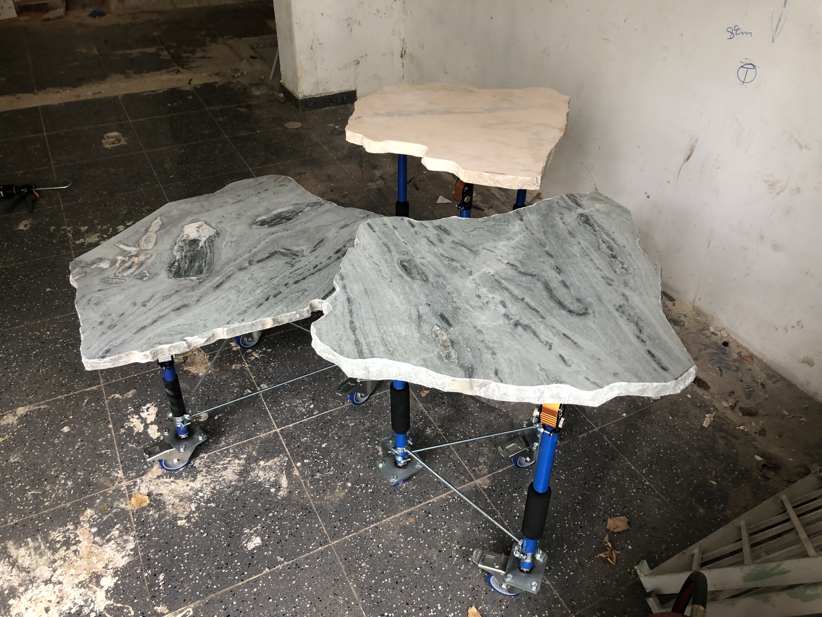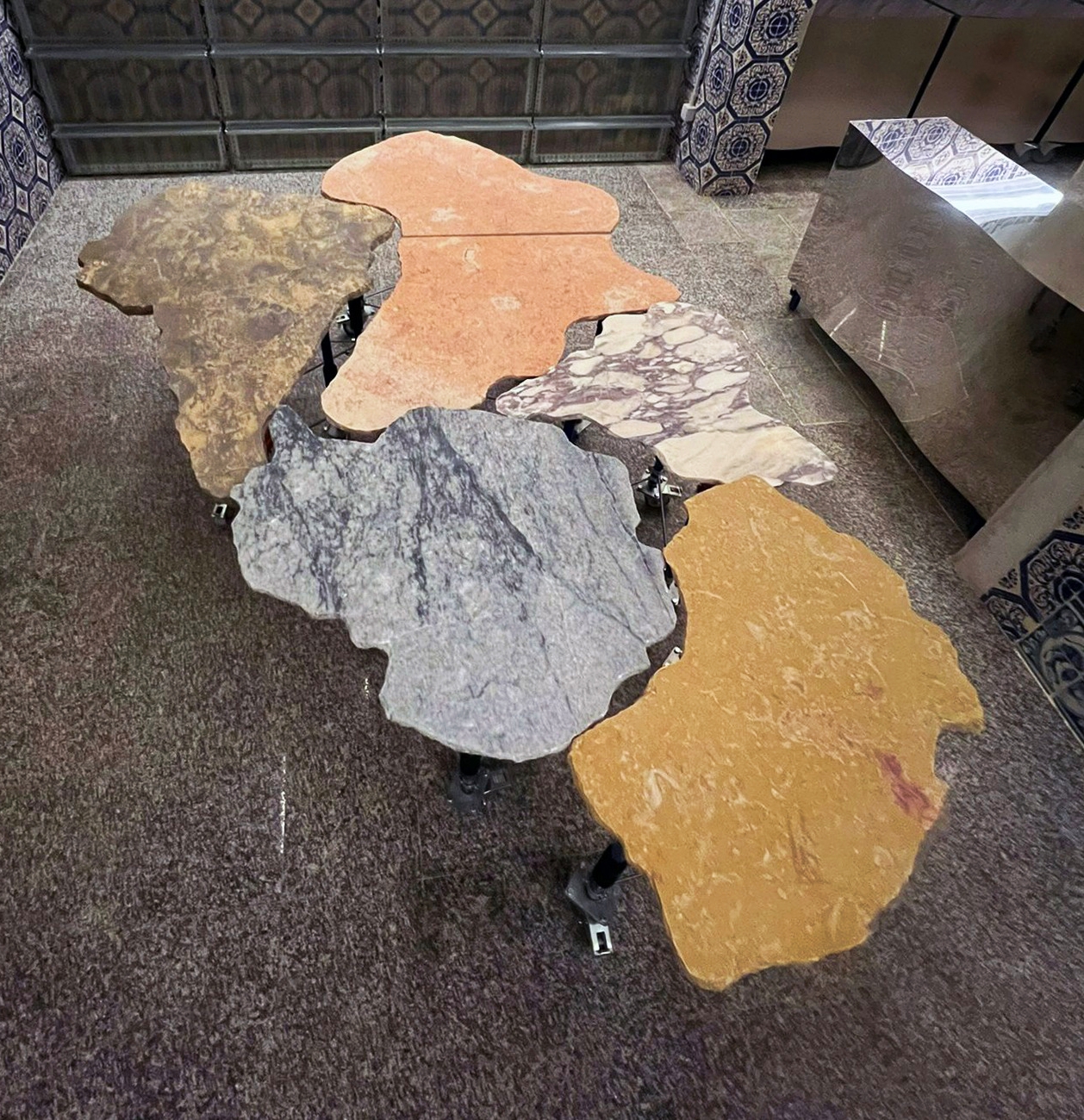 The process began with close collaboration with the architects in selecting stones sourced from industrial surplus—unused slabs set aside—chosen for their ability to evoke the territories that made up the ancient supercontinent Gondwana: Africa, India, Antarctica, the Americas, and Australia.