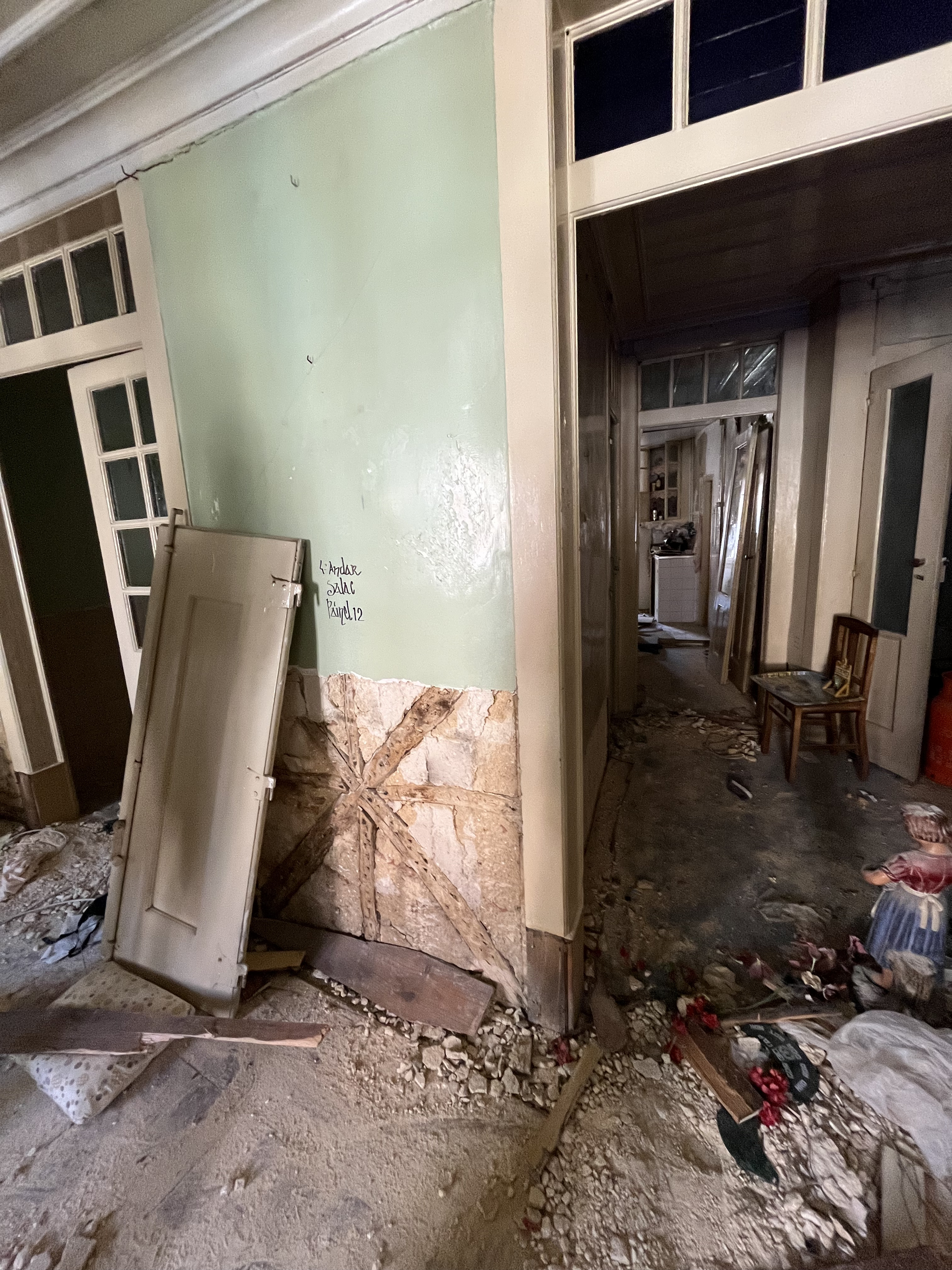 Para a casa de banho, a Novonovo recuperou e reintroduziu um conjunto de elementos provenientes de um edifício em demolição na Baixa de Lisboa — uma porta, um lavatório e uma sanita. Estes componentes foram cuidadosamente desmontados, higienizados e reintegrados no novo contexto, prolongando o seu ciclo de vida.