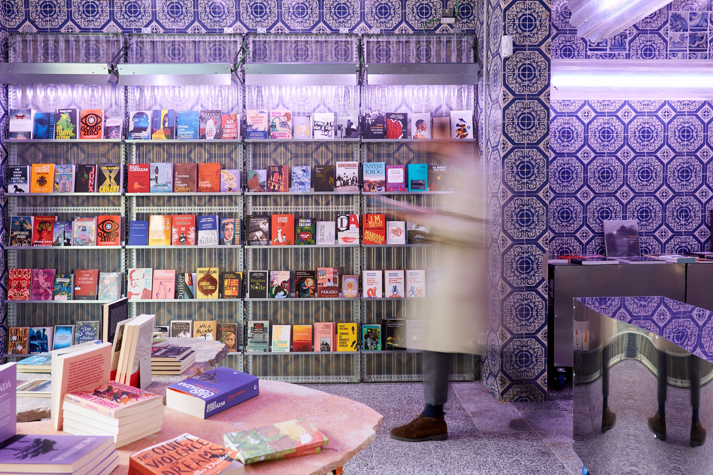 A intervenção da Novonovo na Livraria Gondwana insere-se num projeto que cruza arquitetura, política e materialidade, explorando o espaço como um arquivo vivo de transformações urbanas e culturais.