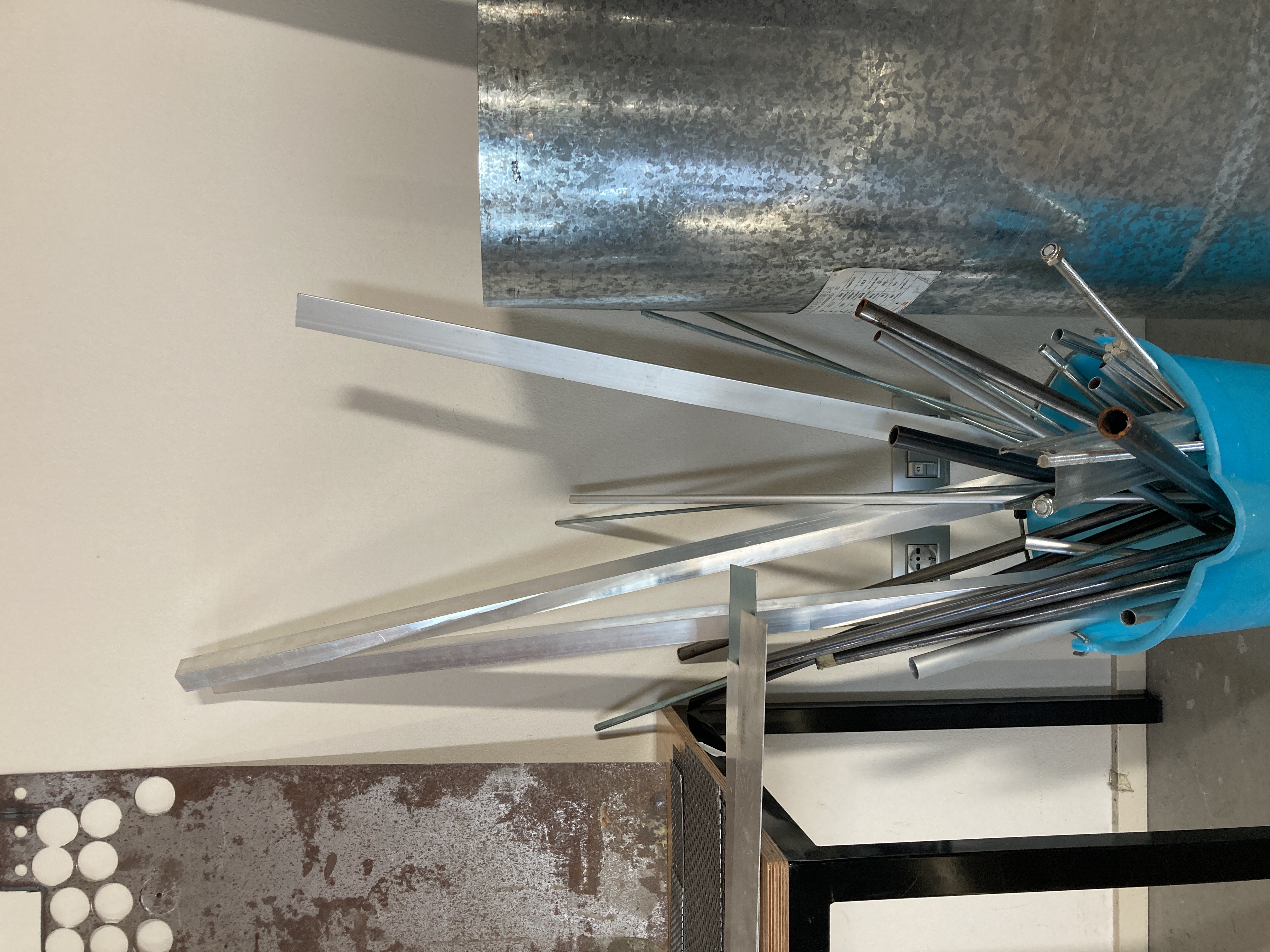 Besides the main materials, a set of standard joining and assembly components were given — such as screws, nuts, metal rings of various sizes, threaded rods, flat and angled connection plates, hinges, clamps, steel cables, wheels, pipe connectors, and springs — which enabled the testing of simple, reversible, and adaptable assembly systems across different materials.