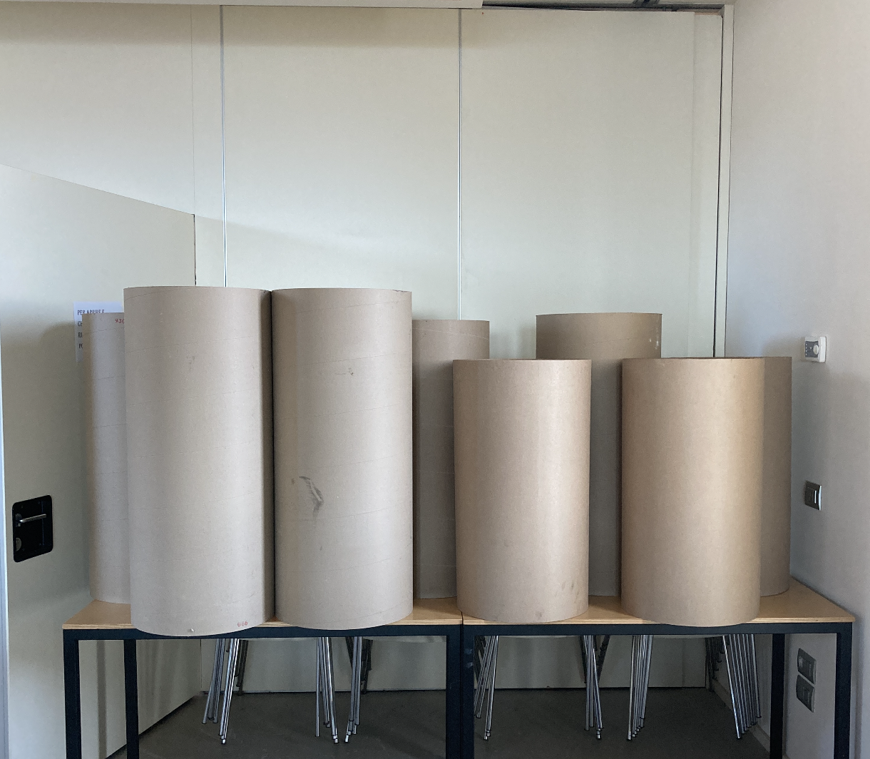 The materials were sourced from five companies within the San Marino territory, as well as from the university itself, including industrial cardboard tubes, galvanized steel sheets, defective extruded PVC profiles, marble and granite offcuts, various metals, wood panels and derivatives, among others.