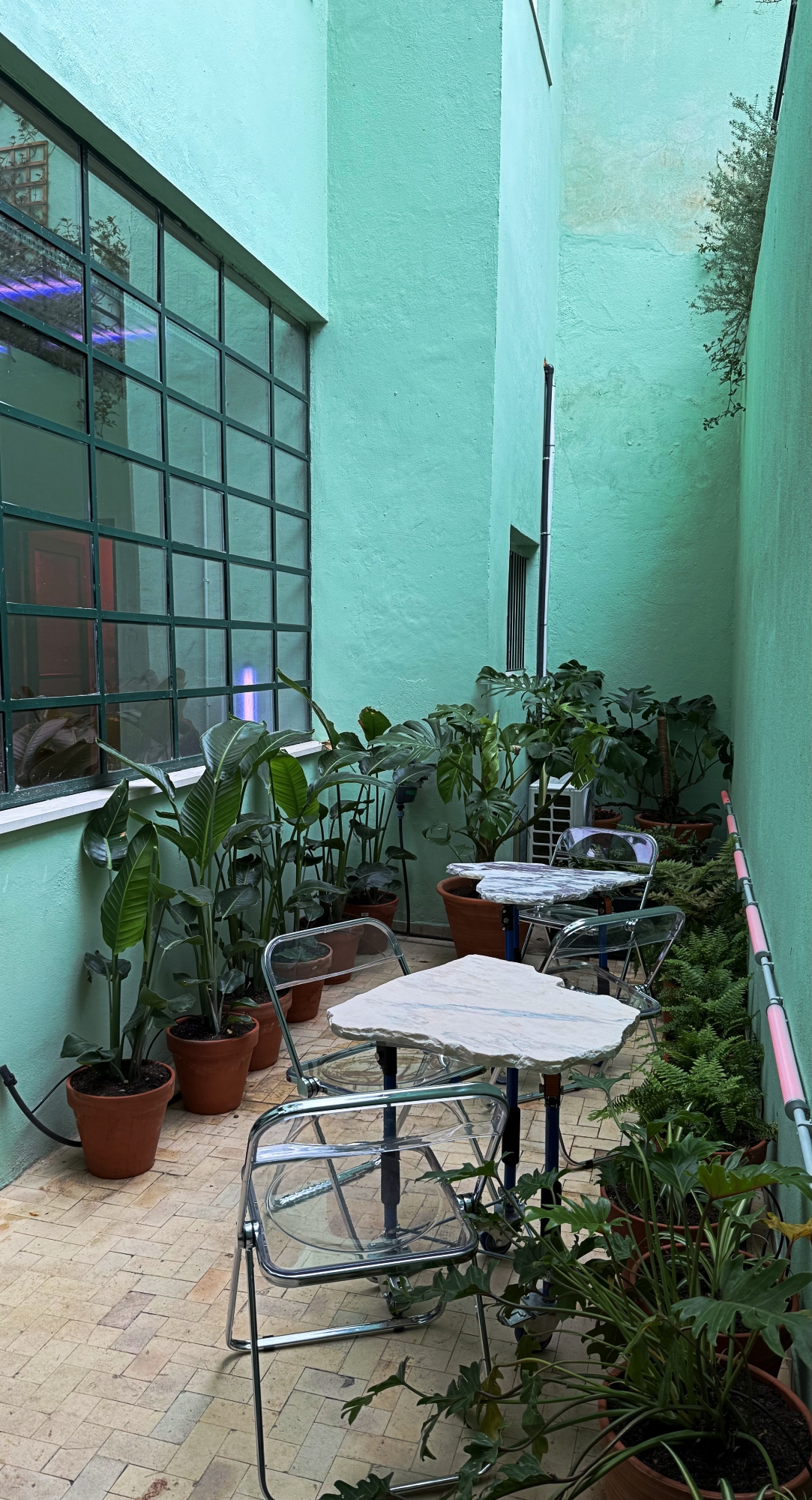 For the restroom, Novonovo salvaged and reintroduced a set of elements from a building slated for demolition in downtown Lisbon—a door, a sink, and a toilet. These components were carefully dismantled, sanitized, and reintegrated into the new context, extending their lifespan.