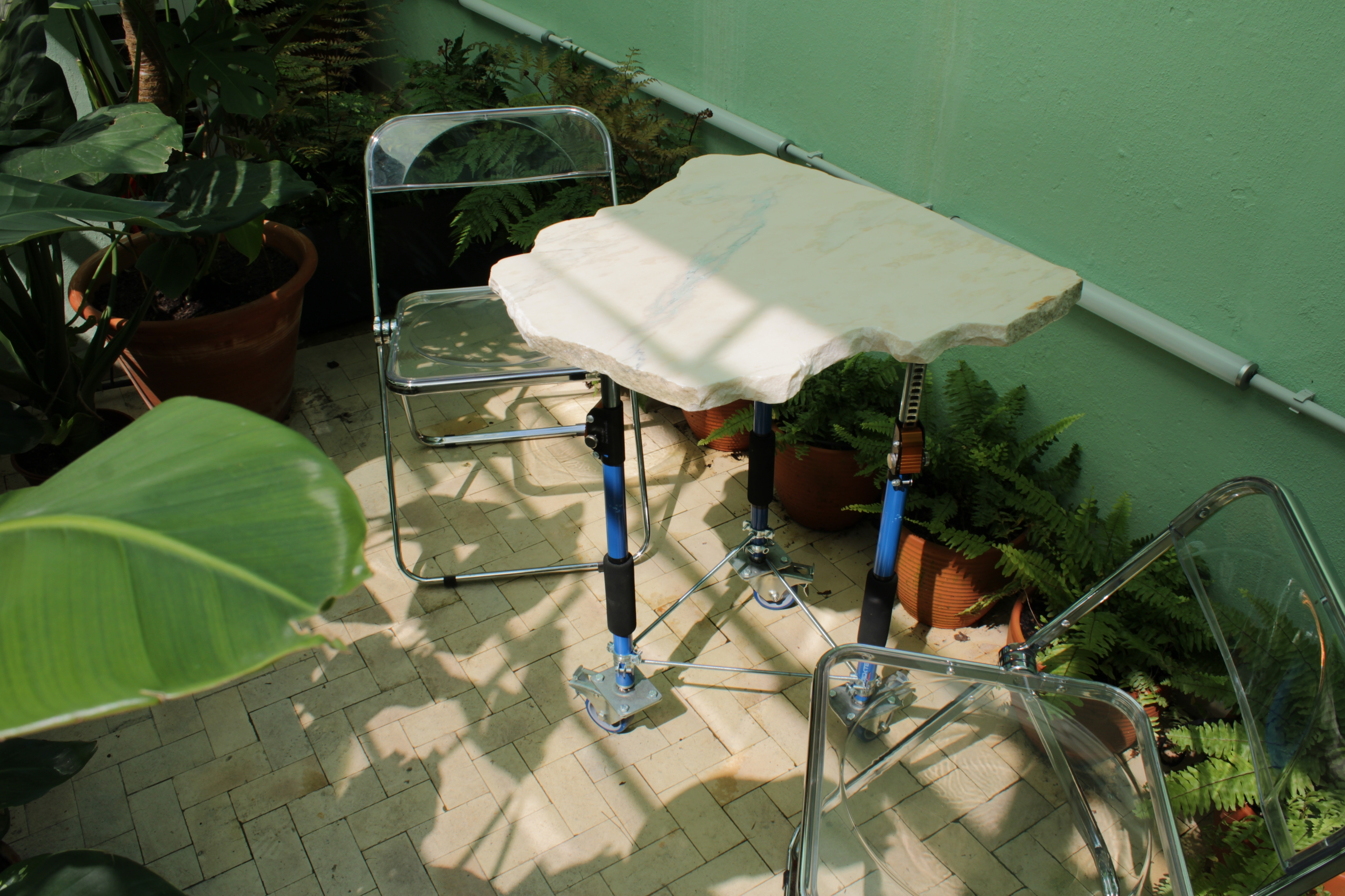 In total, 14 tables were produced, arranged as geographical fragments that evoke the different continental masses of the ancient Gondwana: one Africa (divided into two parts), eight Indias, two Antarcticas, one America (also divided into two), and two Australias. This arrangement reinforces the interpretation of the ensemble as a modular composition that, when assembled, allows for the symbolic reconstruction of the original supercontinent through its constituent parts.