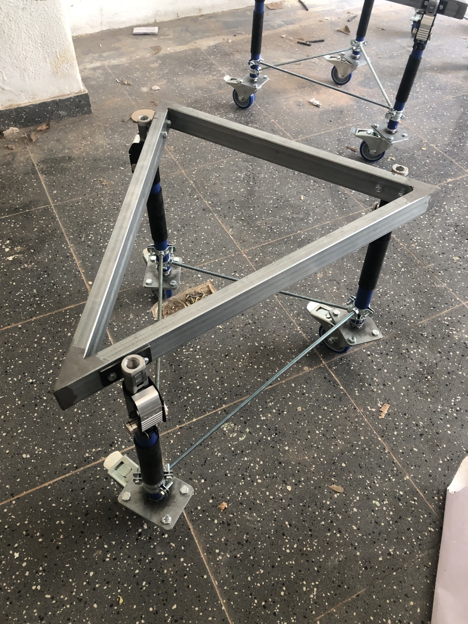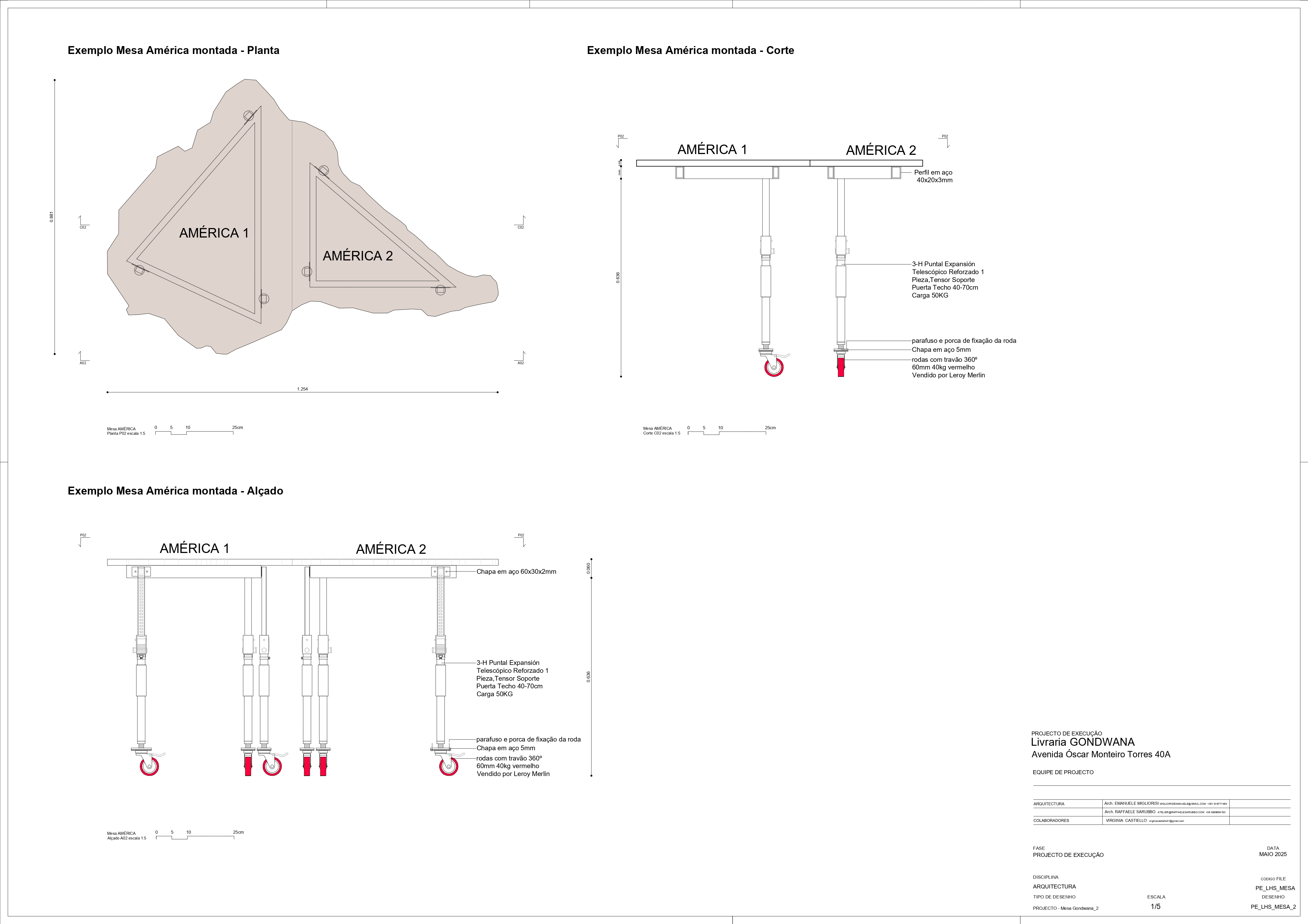 As mesas foram concebidas como elementos móveis e adaptáveis: equipadas com rodas e pernas extensíveis, podendo funcionar tanto como mesas de leitura como expositores, permitindo diferentes configurações do espaço conforme os eventos e utilizações da livraria.
