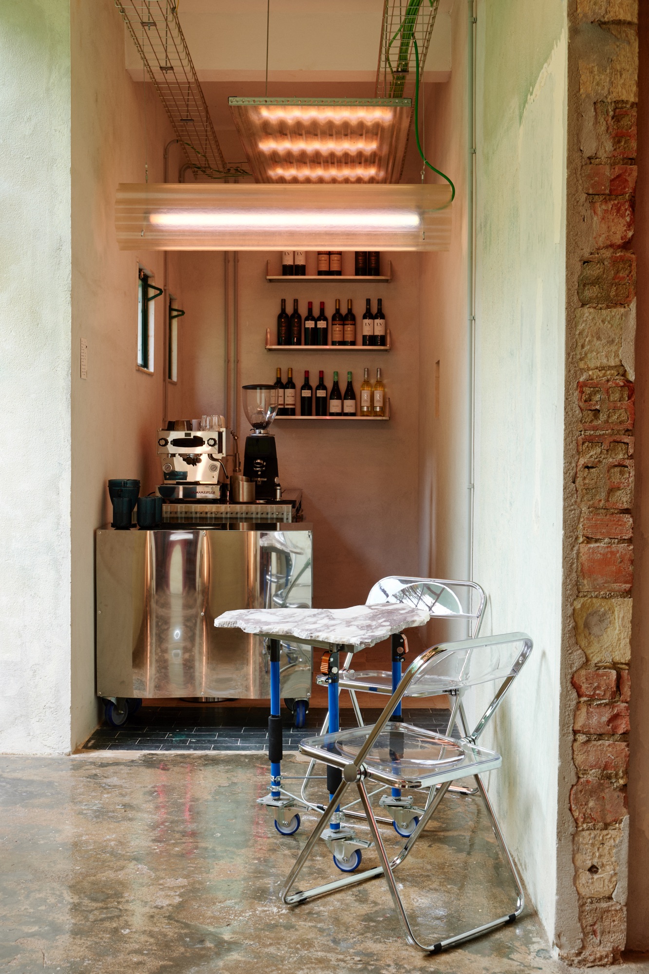 Desenvolvida por Emanuele Migliorisi Studio em colaboração com Studio For Cosmopolitical Models (Raffaele Sarubbo), a livraria propõe uma leitura crítica das dinâmicas recentes de Lisboa, onde diferentes camadas históricas e materiais coexistem e se confrontam.