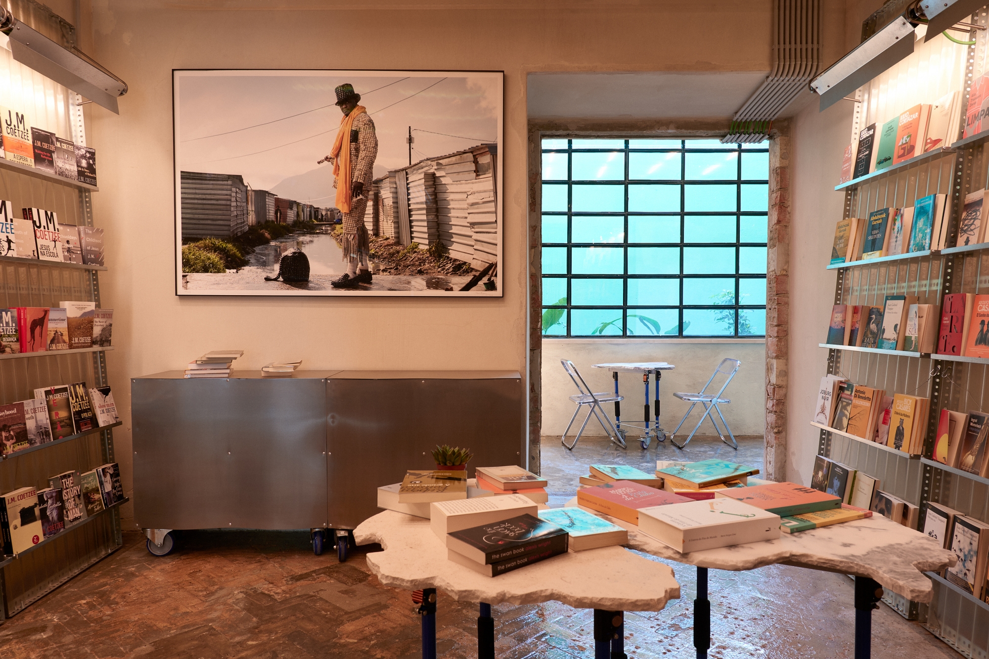 Developed by Emanuele Migliorisi Studio in collaboration with Studio For Cosmopolitical Models (Raffaele Sarubbo), the bookstore offers a critical reading of Lisbon’s recent dynamics, where different historical and material layers coexist and clash.