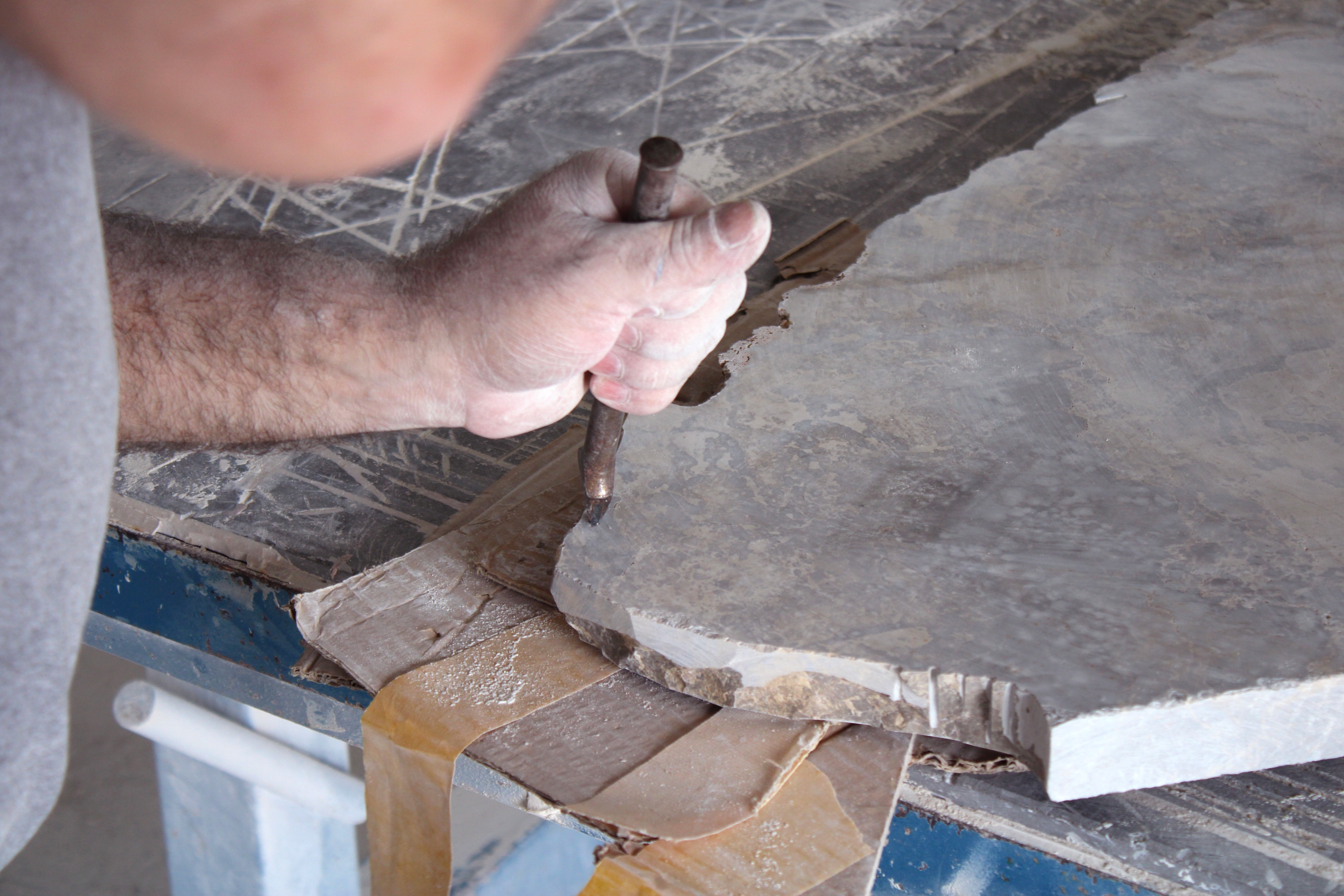 The process began with close collaboration with the architects in selecting stones sourced from industrial surplus—unused slabs set aside—chosen for their ability to evoke the territories that made up the ancient supercontinent Gondwana: Africa, India, Antarctica, the Americas, and Australia.